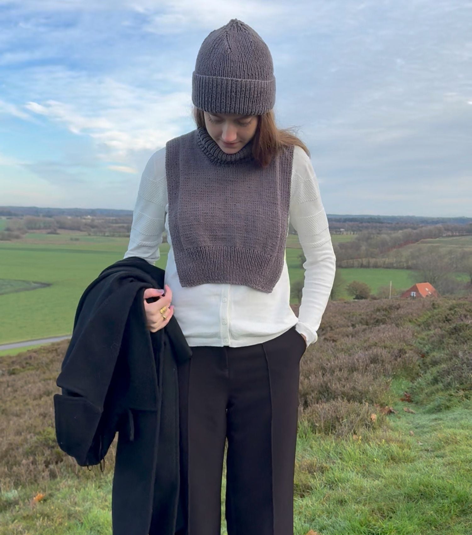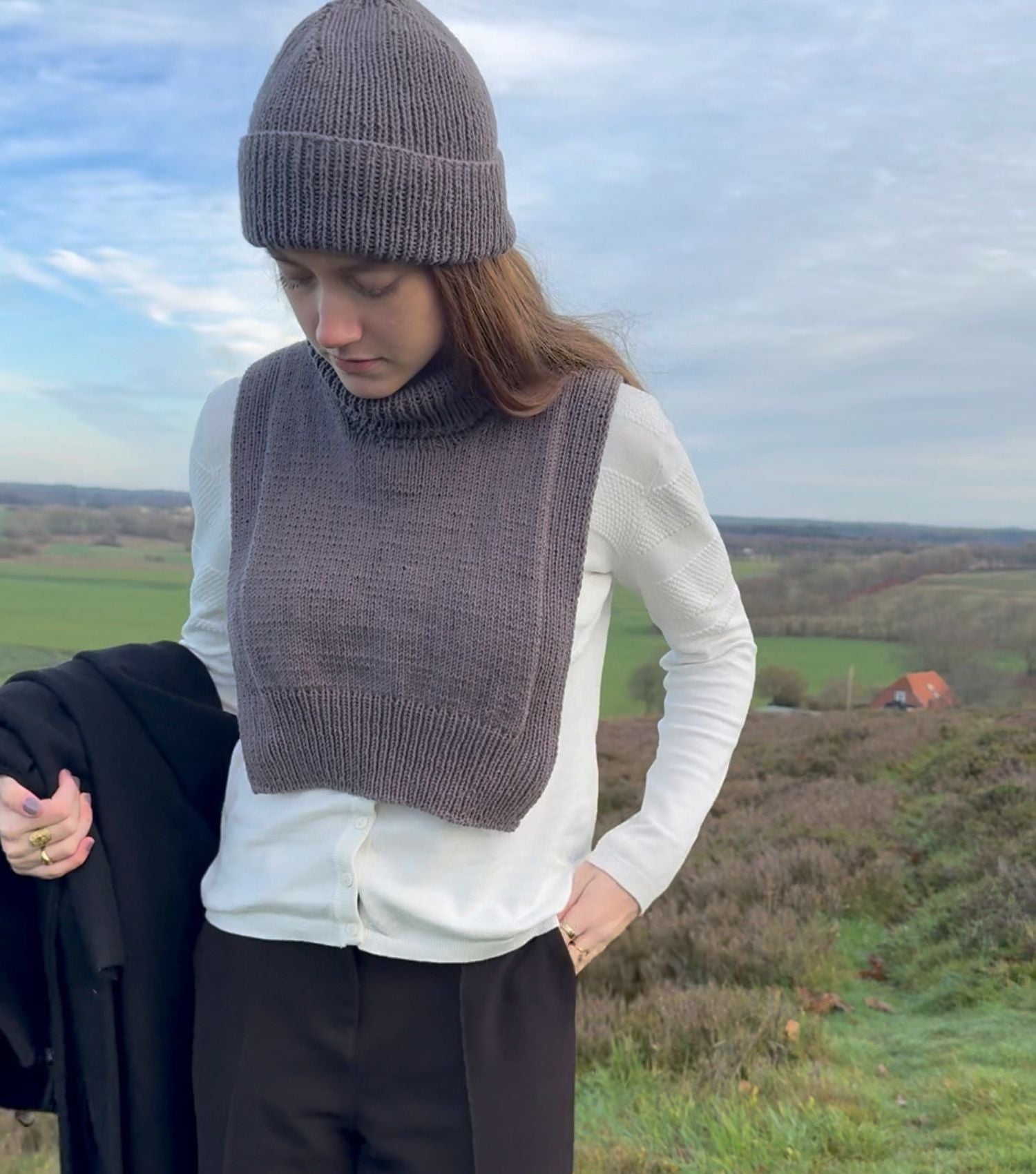Flora Neck strikkes fra rygstykket op mod skuldrene, og ned over forstykket. Der strikkes åbning til hovedet, hvor masker til sidst samles op til rullekraven.
