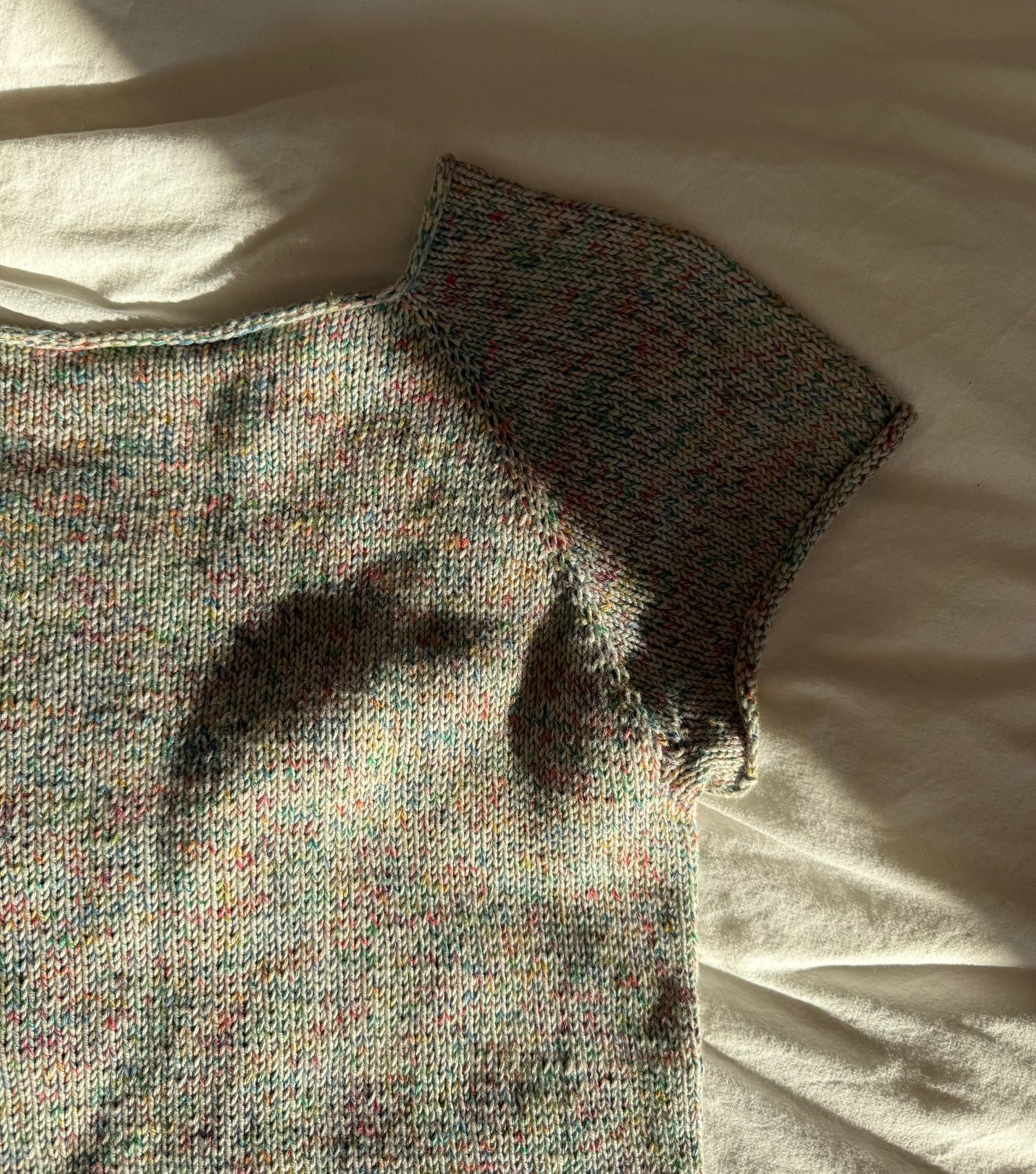 Den lilla May T-shirt er strikket i Lana Grossa Elastico i farven [179].