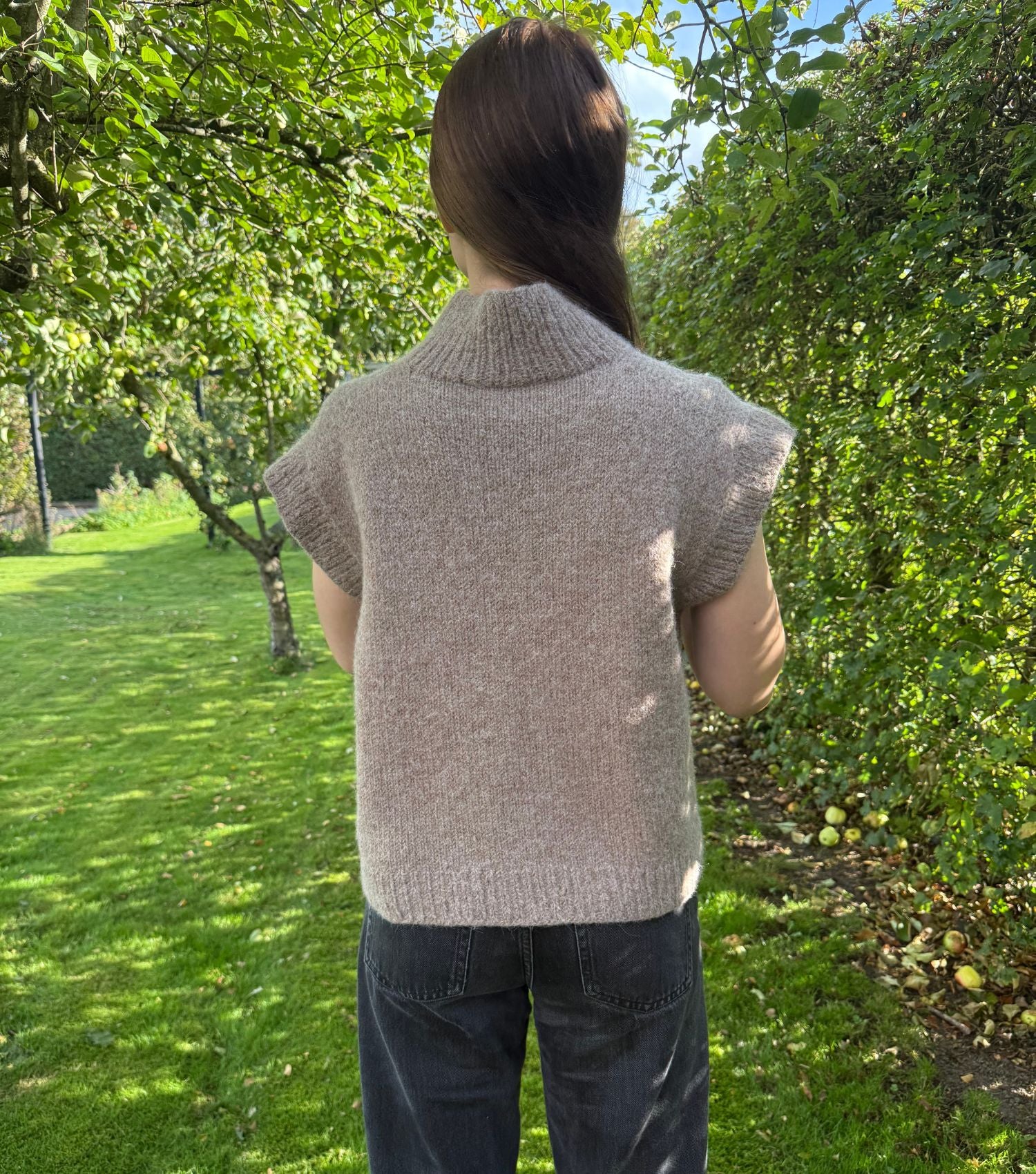Længde: 52 (54) 56 (58) 60 (62) 64 (66) 68 (70) cm (målt midt bag uden halskant)
